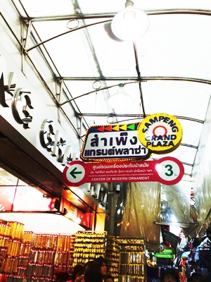 เดินเข้าซอยคิคุย่า แล้วเดินต่อไปอีก ไม่กี่ก้าวจะเจอ สำเพ็งแกรนด์พลาซ่าทางซ้ายมือ